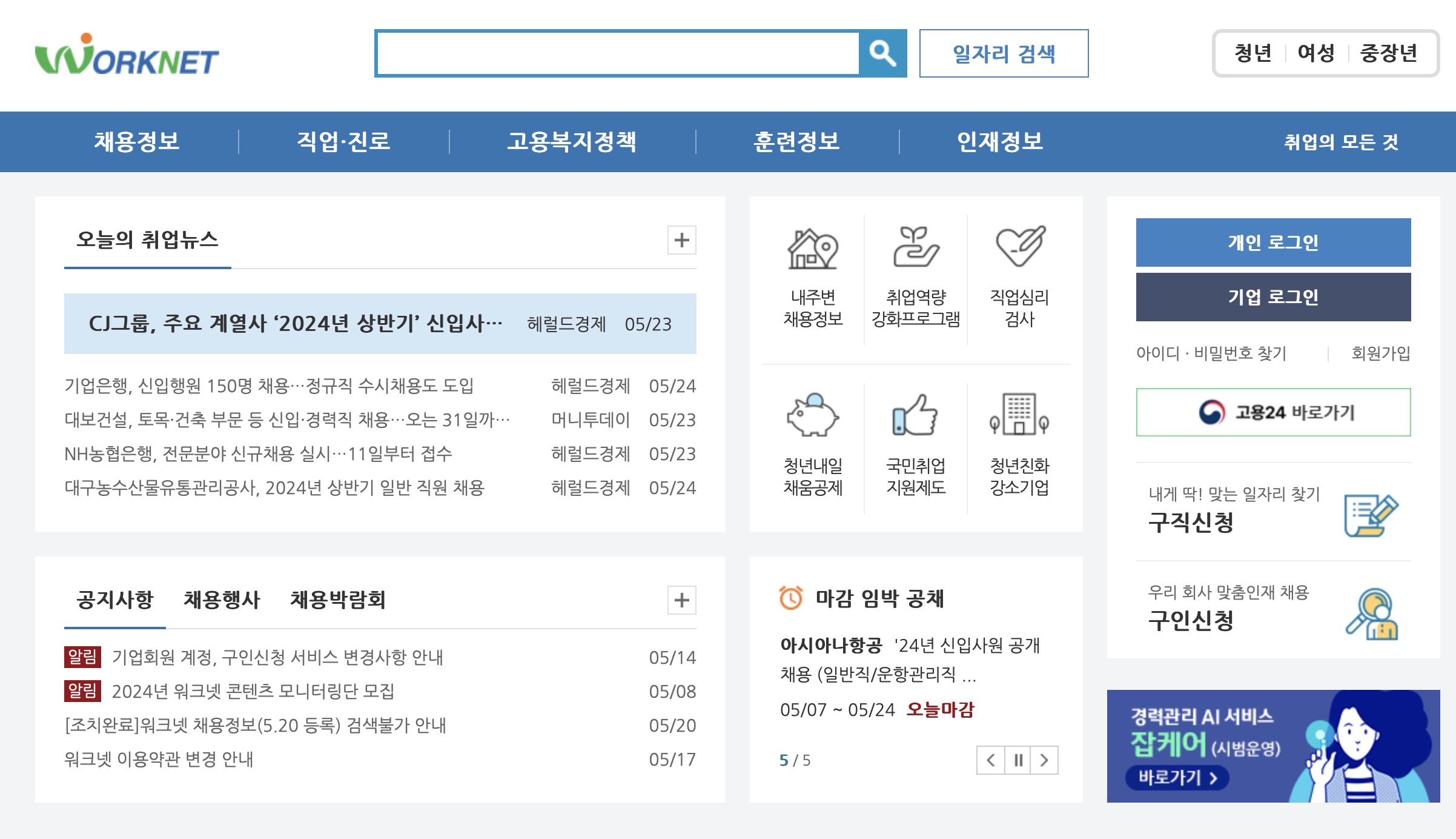 워크넷 https://www.work.go.kr/seekWantedMain.do