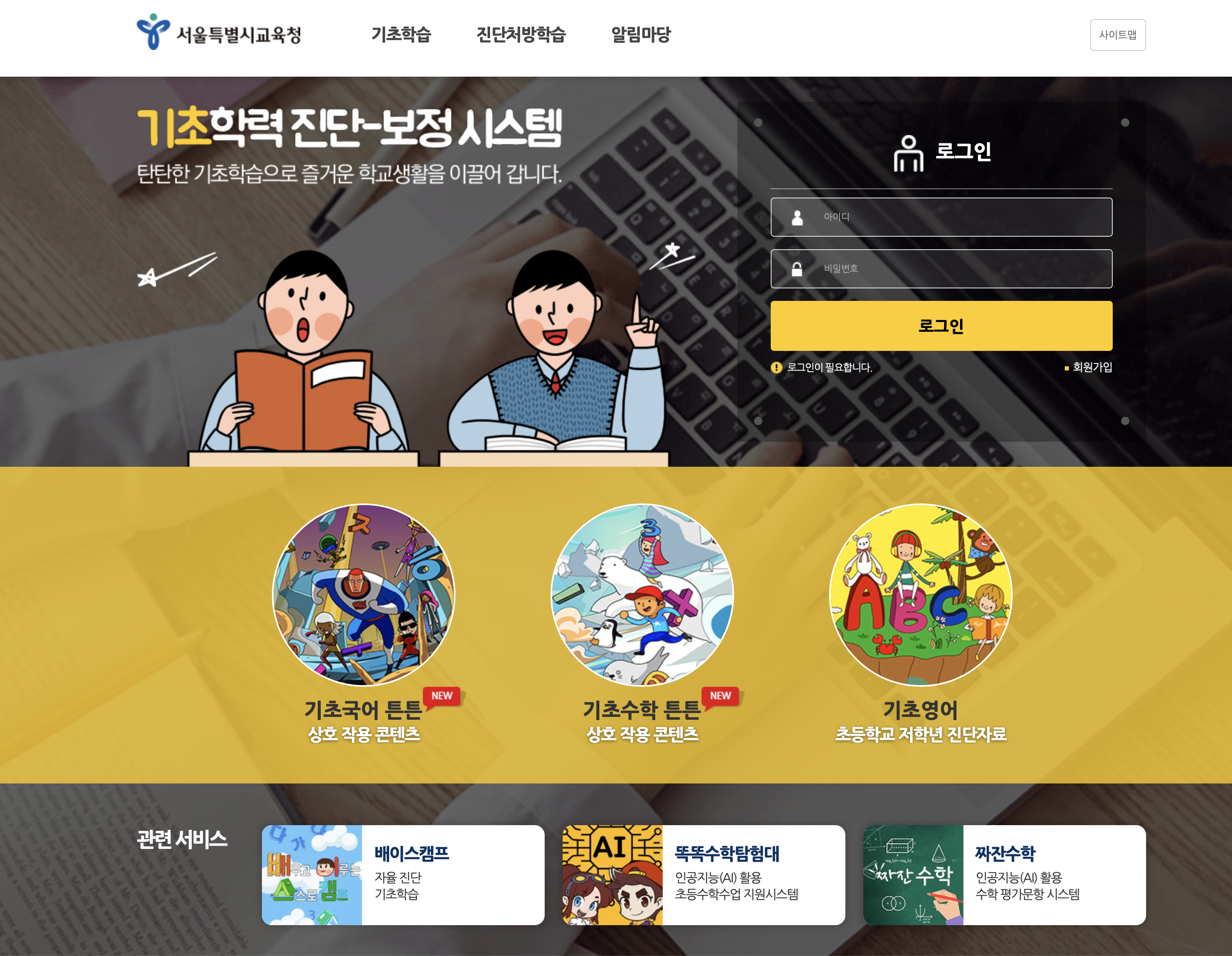 기초학력 진단보정 시스템 - https://s-basic.sen.go.kr/pt/index.do